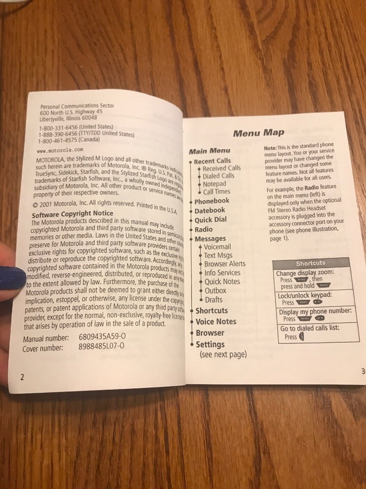 User’s Guide Motorola V.60c CDMA SHJN4288A Instruction Manual Only Ships N 24h
