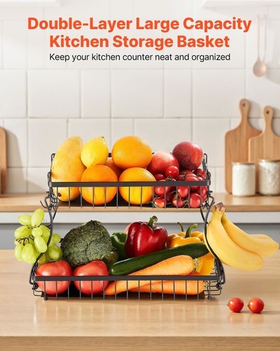 Detachable Assembly: No complex tools required. Our metal wire fruits storage stand can be separated into 2 independent baskets. Flexible adjustment to suit different kitchen environments and storage needs