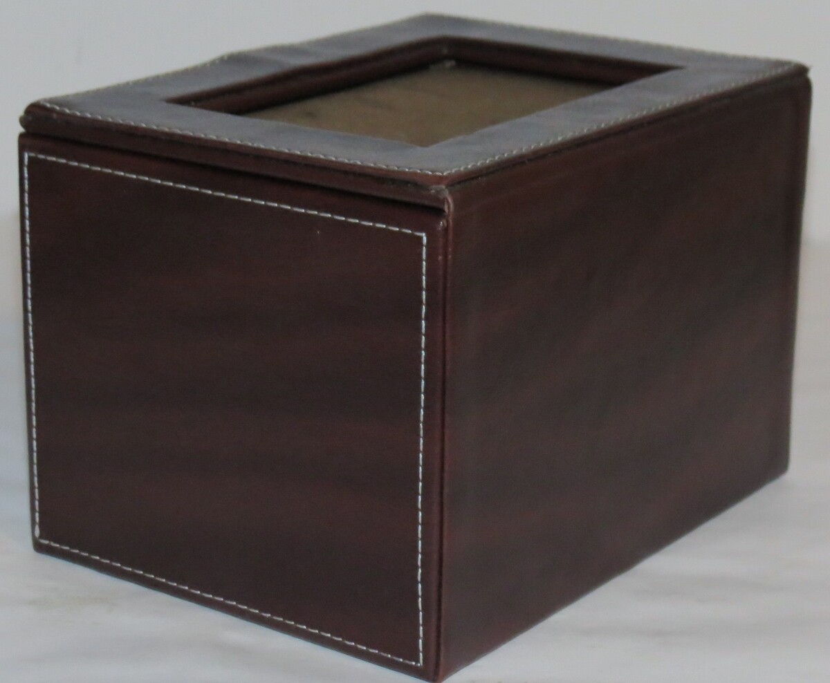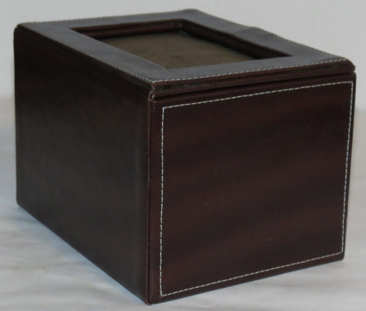 Brown 6.5" x 5" Faux Leather Photo Storage Box, Window Frame Top