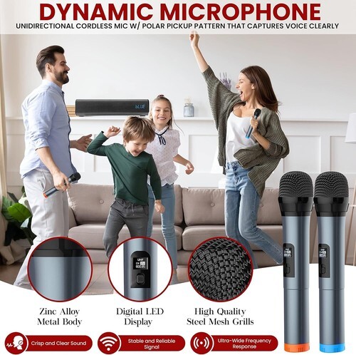 UNIDIRECTIONAL, DYNAMIC MICROPHONE: Our wireless soundbar with microphone is a unidirectional cordless mic with polar pickup pattern that captures your voice clearly. It has a frequency response of 50Hz-12kHz made with a zinc alloy material