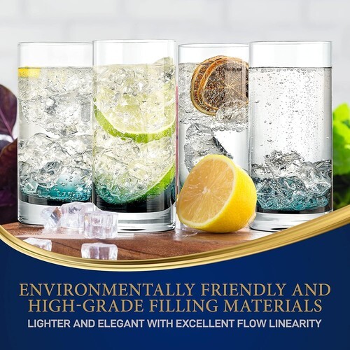 Introducing our set of 4 Highball Drinking Glasses - where elegance meets durability for all your beverage delights. Crafted with meticulous precision, these glasses are designed to elevate your drinking experience whether you're sipping water, wine, beer, cocktails, whiskey, or juice. Versatile Sophistication: Elevate your drink experience with these highball glasses. Their tall and sleek design adds a touch of sophistication to any occasion, making them ideal for water, wine, beer, cocktails, whiskey, juice, and more. From casual gatherings to upscale events, these glasses enhance the visual appeal of every drink. Sturdy Heavy Base: Designed with a solid and weighty base, these glasses offer stability and prevent tipping. Say goodbye to spills and hello to worry-free entertaining. Enjoy your favorite beverages with confidence, whether you're hosting a party, relaxing at home, or toasting at celebrations. Perfect for Bars and Parties: Ideal for both professional bars and home parties, these highball glasses are a bartender's delight. Their versatile design makes them perfect for showcasing a wide range of drinks, from classic cocktails to vibrant mixed beverages. Make a statement with every pour. Exquisite Gift Choice: Searching for a thoughtful and practical gift? Our set of 4 Highball Drinking Glasses is elegantly packaged, making it a perfect choice for weddings, housewarmings, or any occasion.