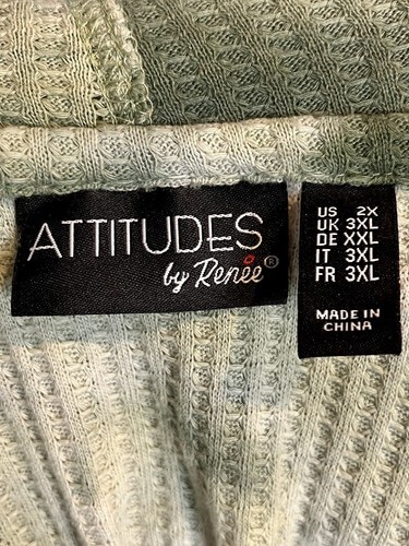 Attitudes by Renee Green and White Tie Dye Waffle Weave Hooded SS Pullover Sz 2X