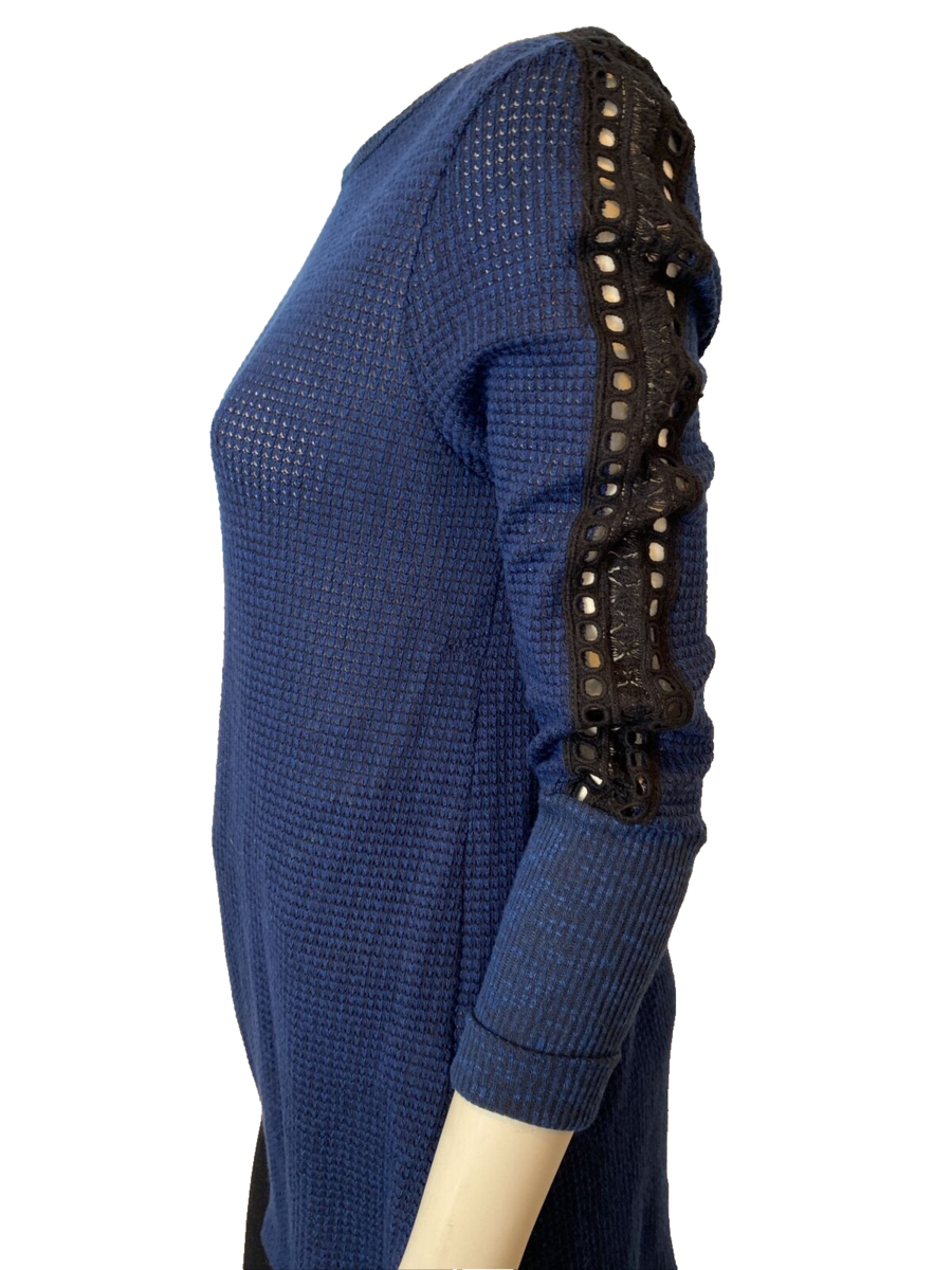 Soft Surroundings Blue Waffle Knit Boat Neck 3/4 Sleeve T Shirt