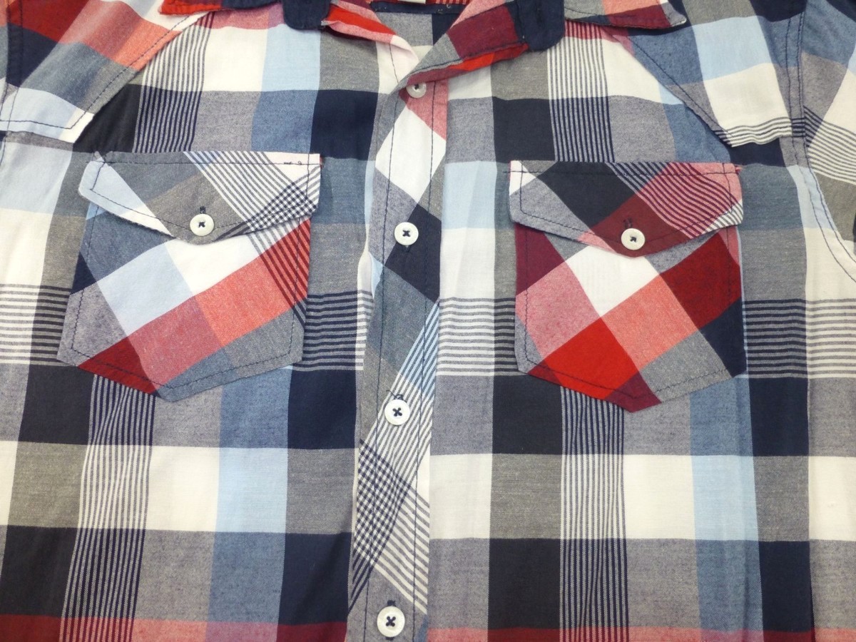 Mens Evolution In Design Red/Blue Plaid Short-Sleeve Button-Up Shirt XL Cotton/P