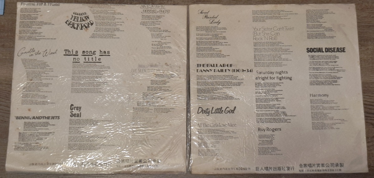 Elton John – Goodbye Yellow Brick Road (Taiwan Giant 2LP GX-1001/1002) VG/VG+