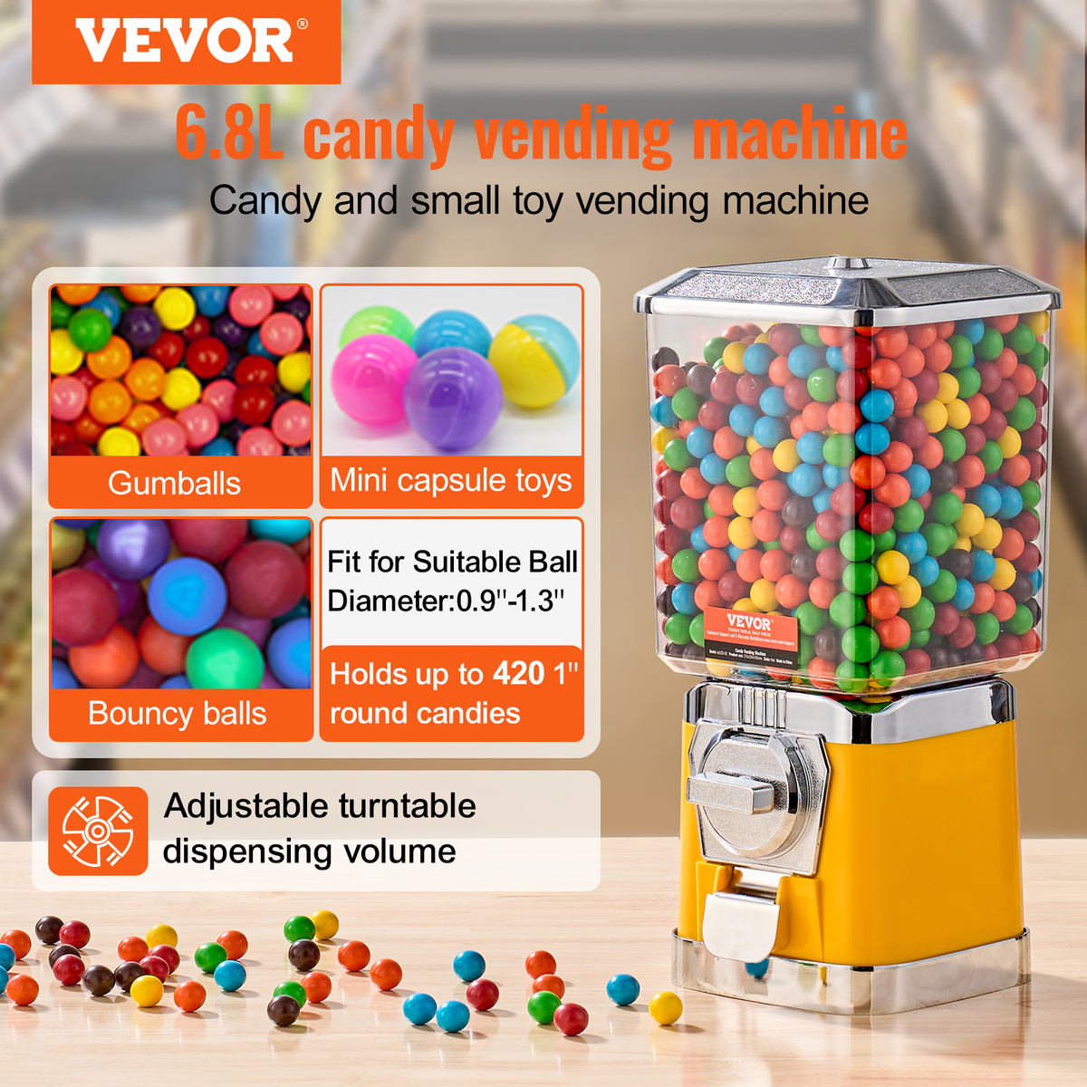 VEVOR Yellow Gumball Machine, 16.9" Candy Vending Machine, PC Gumball Dispenser