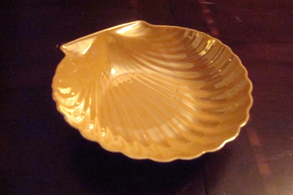 Made in Japan Lusterware shell dish, 7" by 7" by 1 3/4" tall, very good condition, [*87B-BSKTRACK6]