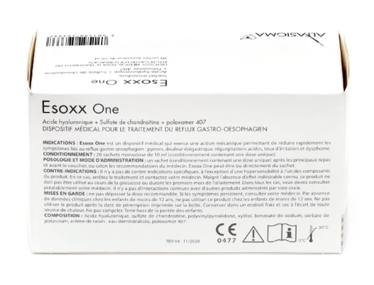 Esoxx one exerts a mechanical action promoting the rapid improvement of symptoms related to gastroesophageal reflux: heartburn, epigastric pain, acid regurgitation, irritating cough and dysphonia.