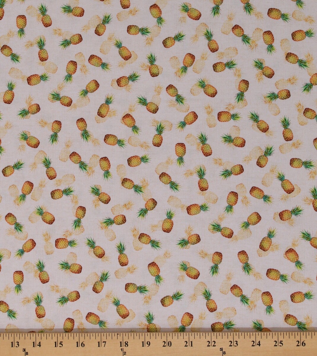 Cotton Pineapples Fruit Tropical Hawaiian Fabric Print by the Yard D485.29