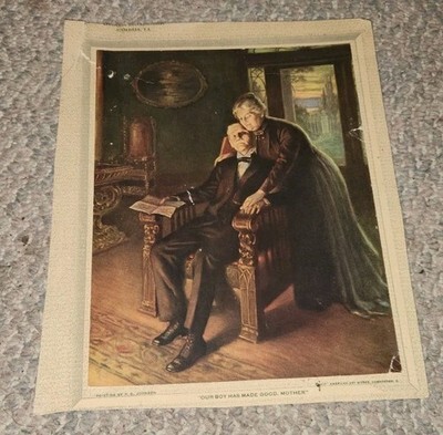 Vintage Old Man in Chair & Woman Standing ALong Side Print Picture