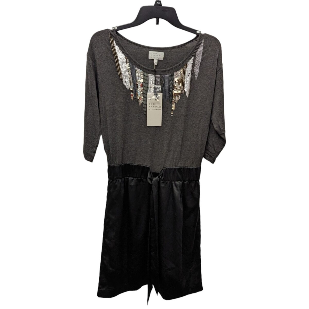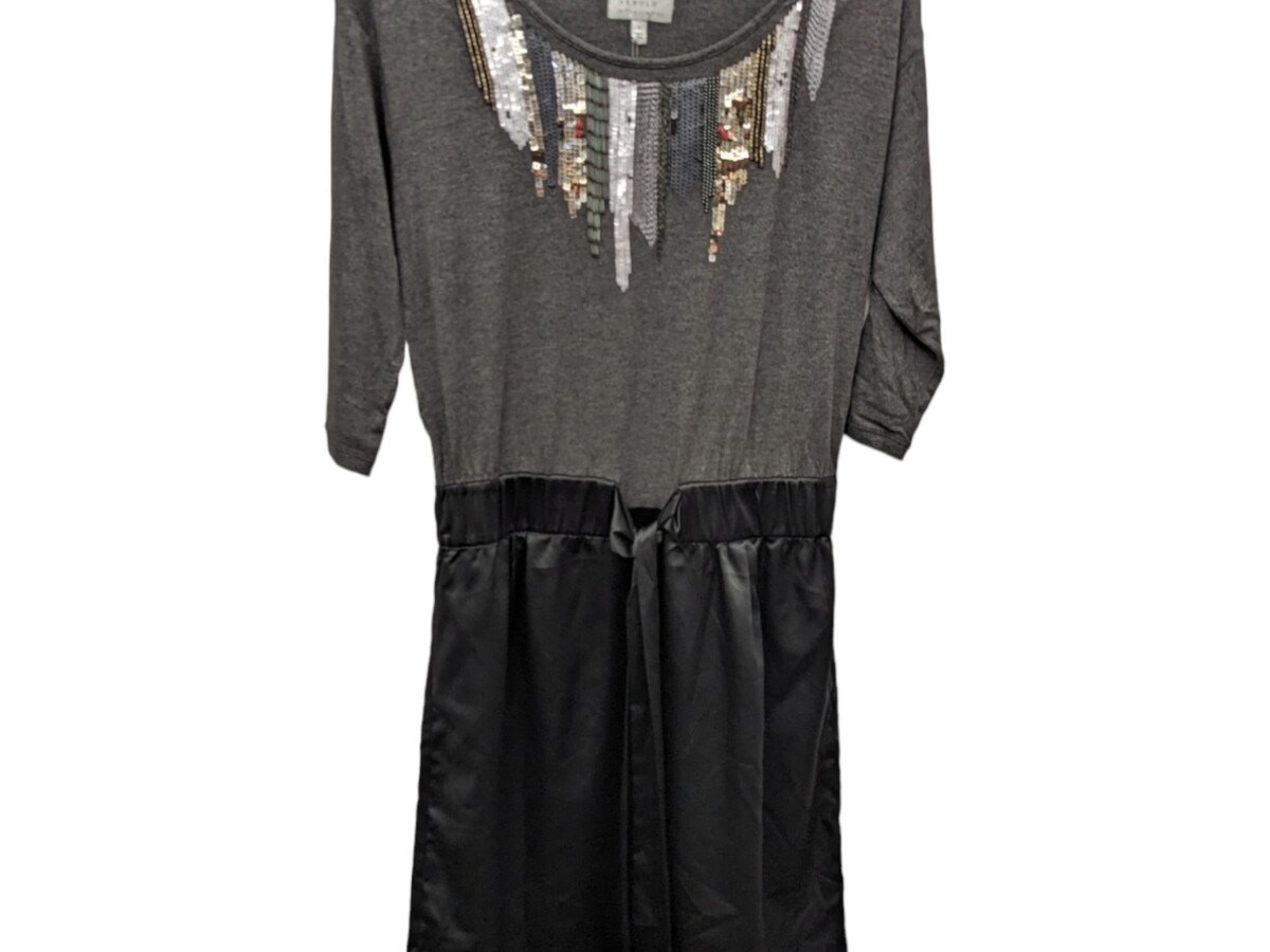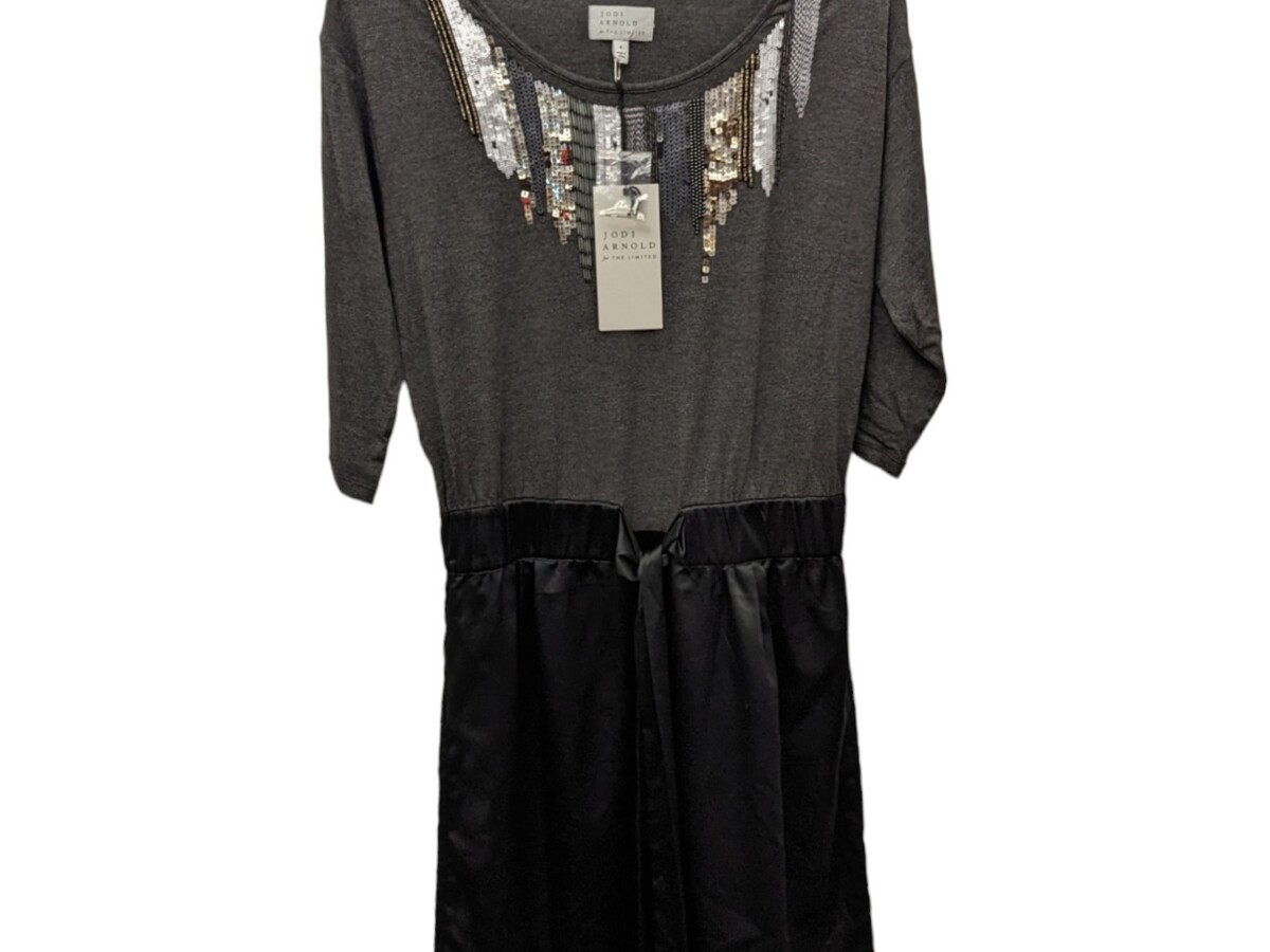 Jodi Arnold For The LIMITED 3/4 Sleeve A-Line Gray Black Sequin Dress Small