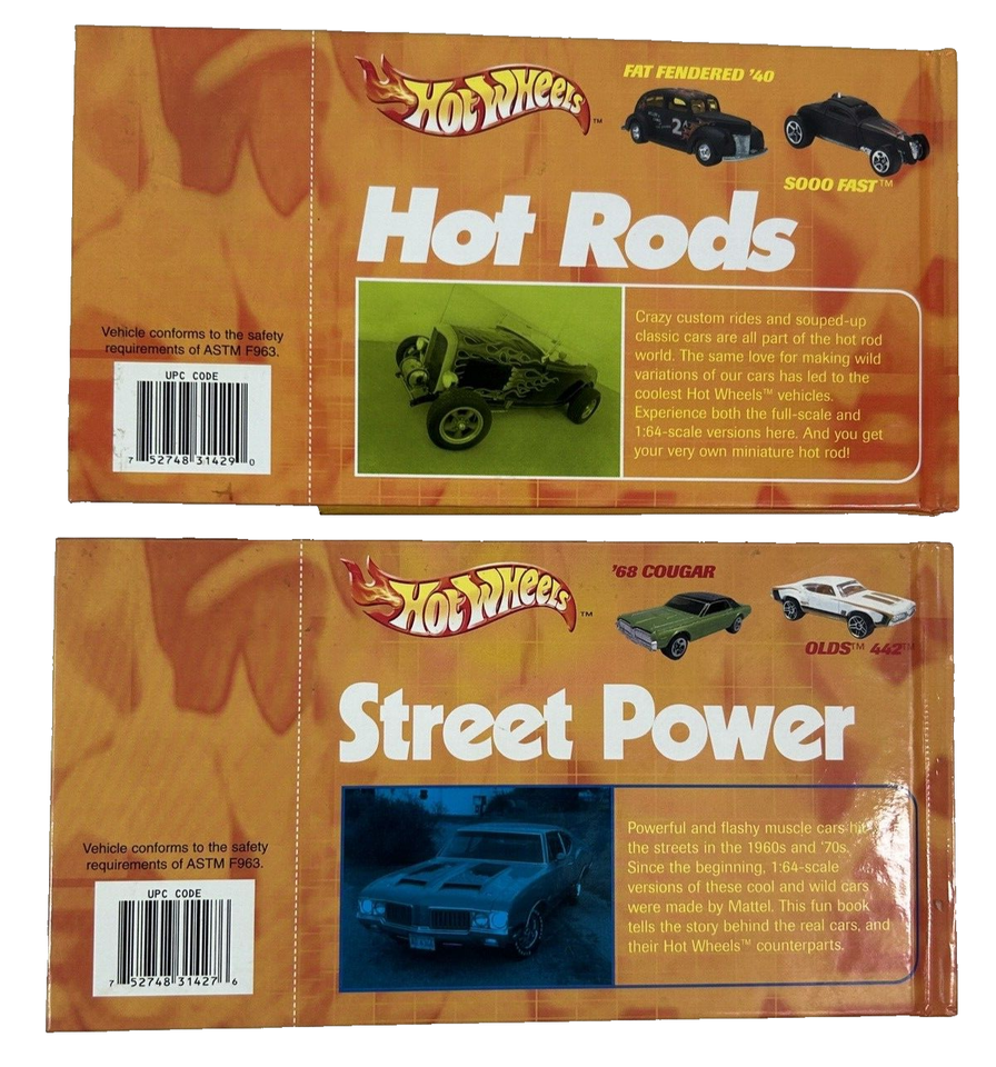 Hot Wheels Lot of 2 Mini Books # 2 & 5 - Hot Rods Sooo Fast + Street Power 442 !