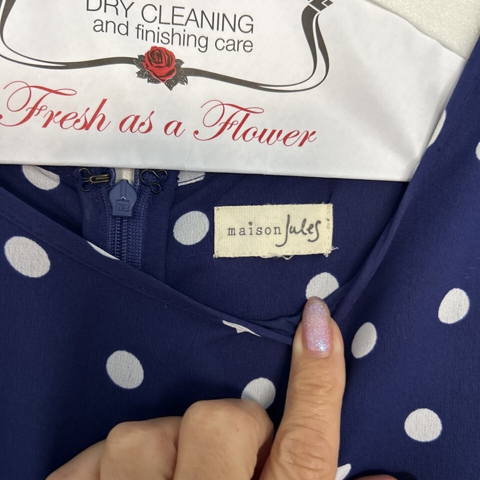 Maison Jules Ladies Dress Navy With White Polka Dots Size M