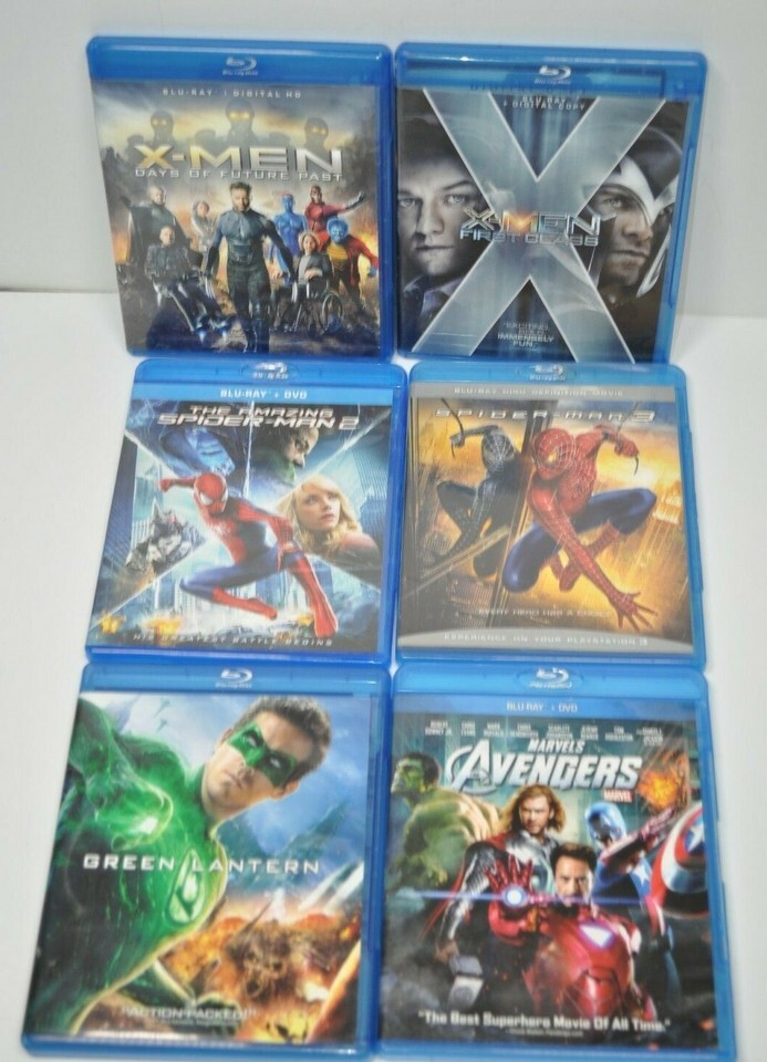 Blu-ray Lot of 6 - X-Men First Class Spider Man 2&3 Avengers Green Lantern Days