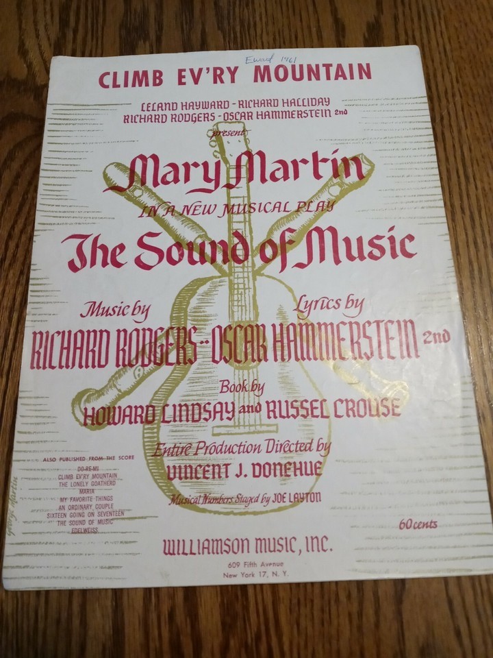 Climb Every Mountain Sheet Music Williamson Music. Condition is "Very Good". Shipped with USPS First Class.AUTHENTIC SHEET MUSIC FROM THE SHEET MUSIC PUBLISHER COLLECTIBLE - VINTAGE - VERY RARE FAST SHIPPING WITHIN 24 HOURS Packed By Our Award Winning Packaging And Shipping Department Long Time E-commerce Seller For Over 20 Years LIMITED AVAILABILITY Add Our Store To Your favorites list ! The sale is final and please do not ask for refunds, returns, changes or cancelations Condition: Used (This Is Vintage Old Rare Sheet Music With Wear,Tears,Creases ect Per Pictures Attached -See All The Enclosed Pictures For The Exact Condition) RARE VINTAGE COLLECTIBLE- SHIPS N 24 HOURS
