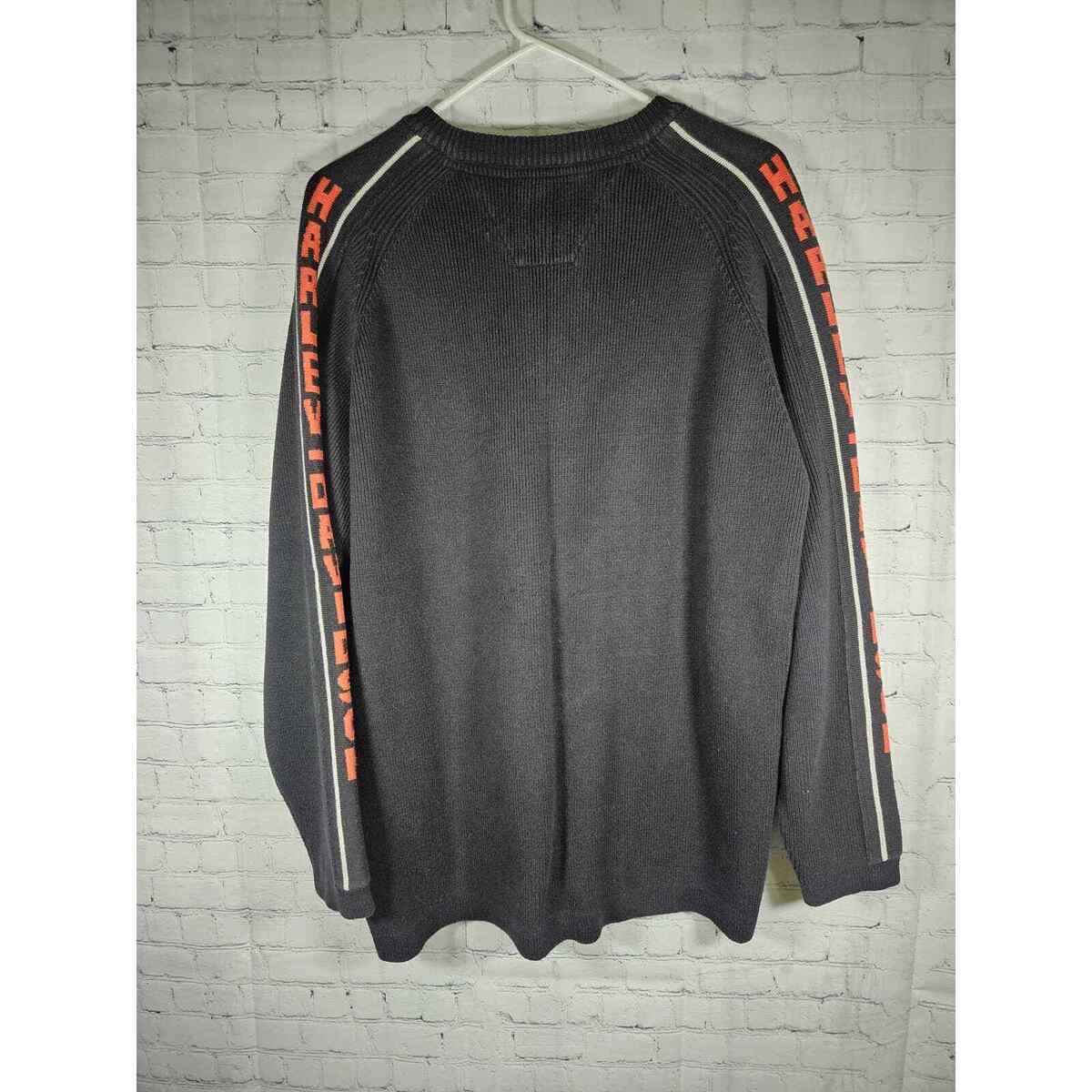 Harley-Davidson Mens Pullover Sweater Black Orange Arm Logo Large