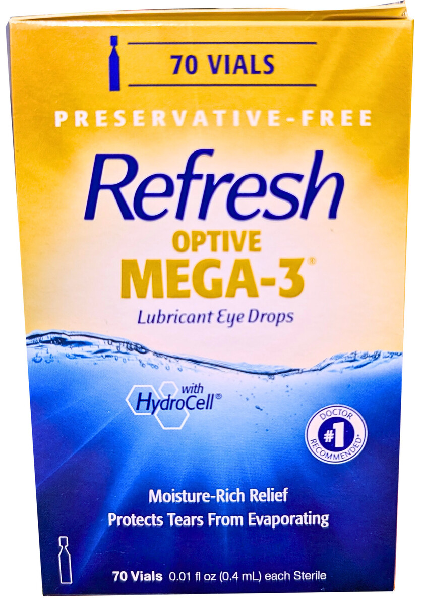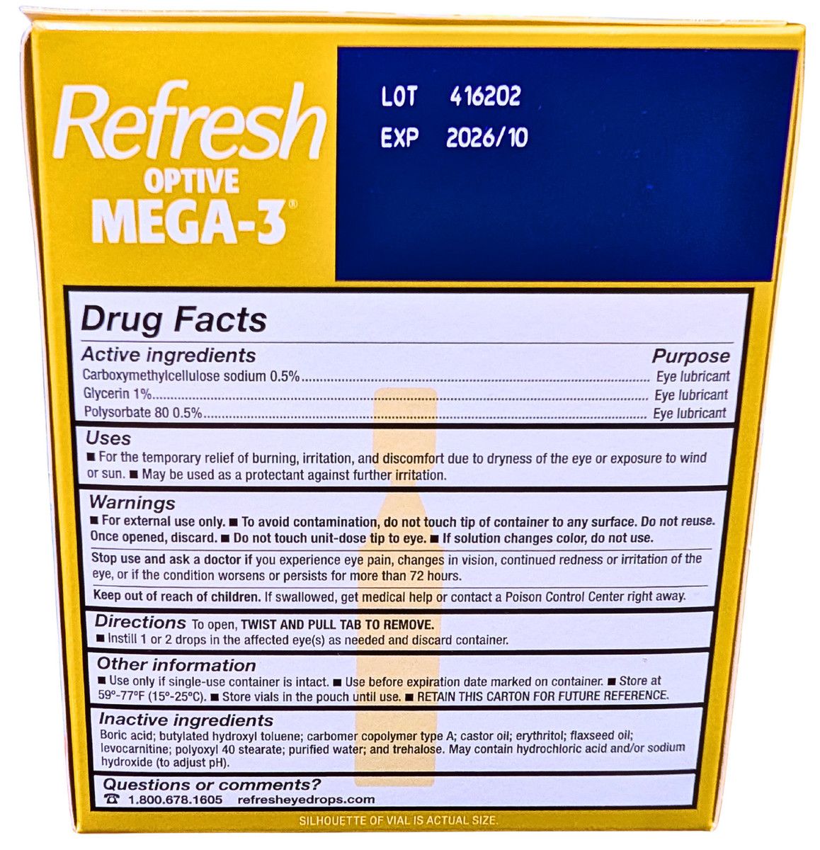 Refresh Optive Mega-3 Lubricant Eye Drops 70 Single Use Vials EXP 10/2026