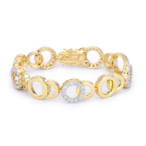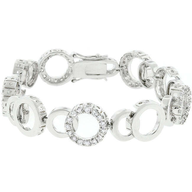 Silvertone Rhodium or Gold Plated Brass Cubic Zirconia Circle 7" Ladies Bracelet