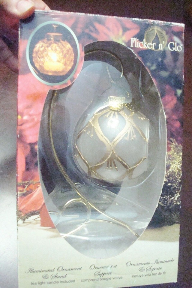 Flicker N' Glo, Christmas Candle Holder Ornament In Original Box 9" In Stand