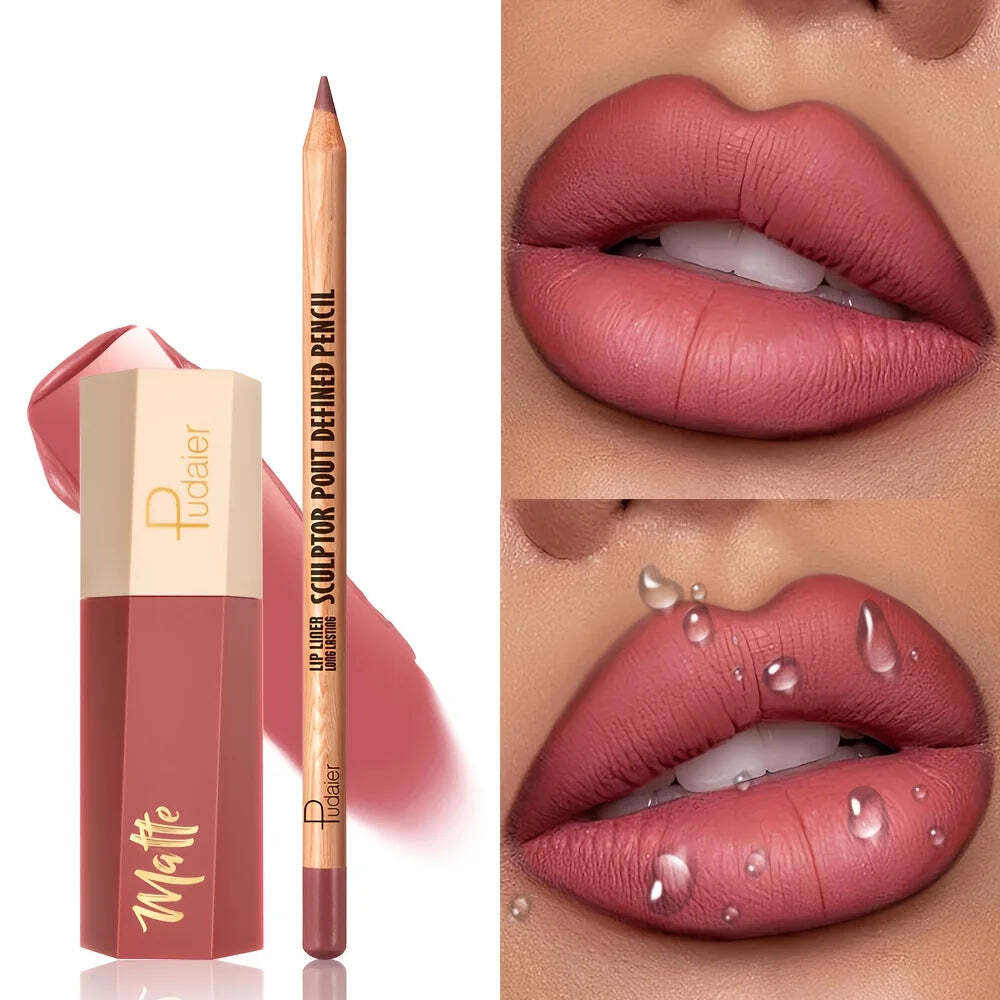 Matte Lip Gloss Lip Liner Pen Set – Velvet, Waterproof, All-Day Confidence