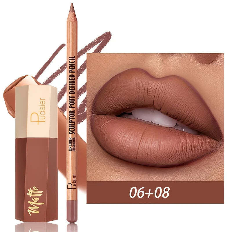 1set Matte lip gloss and lip liner pen set, Long-lasting, Waterproof!