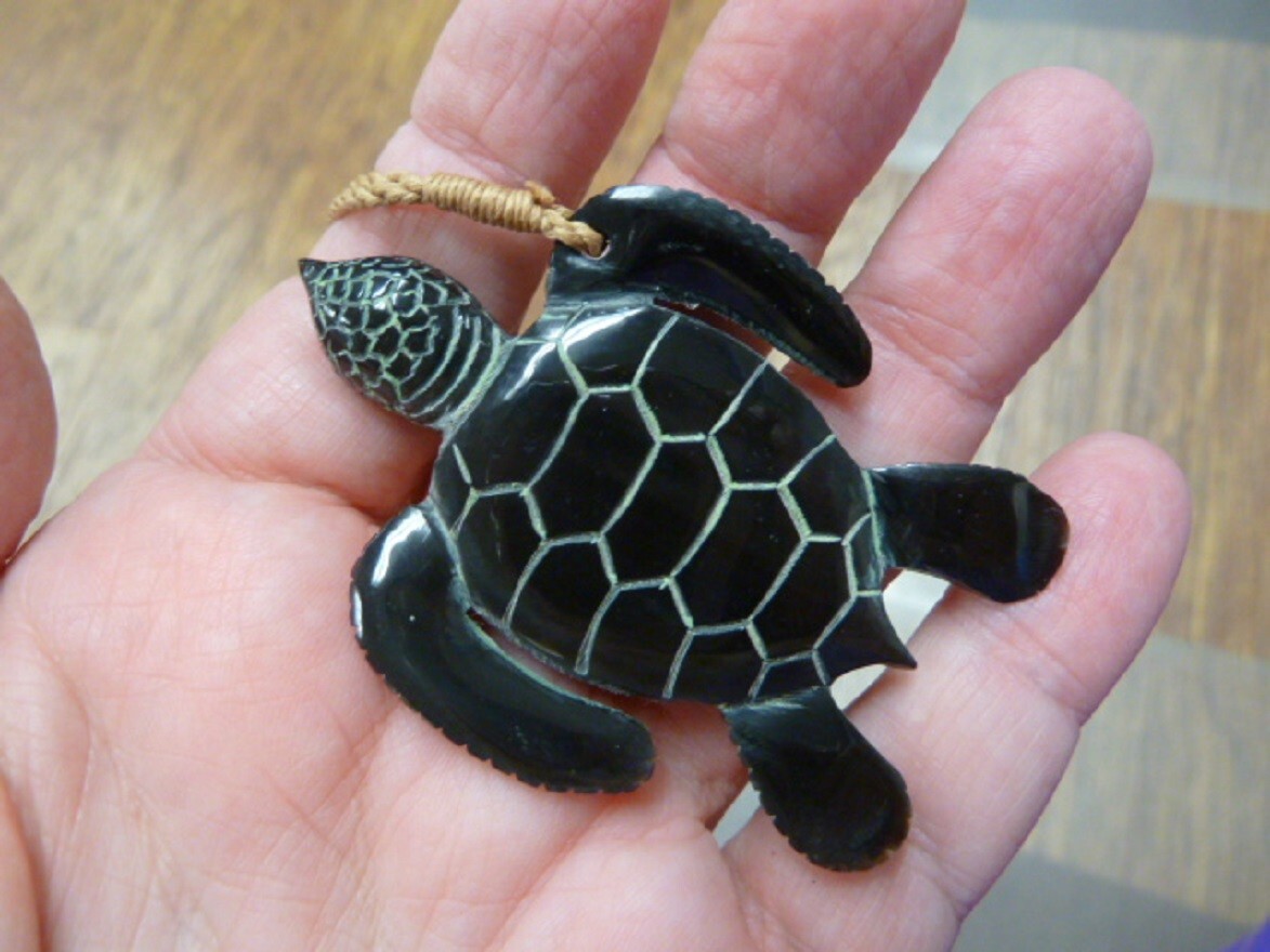 (J-Turtle-61-C) large black SEA TURTLE carved horn Jewelry Pendant Necklace