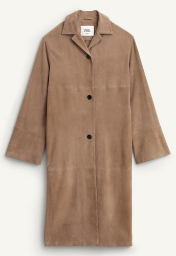 ZARA BNWT 2025. CHOCOLATE SAND SUEDE% LEATHER COAT LIMITED EDITION. 6098/905/717