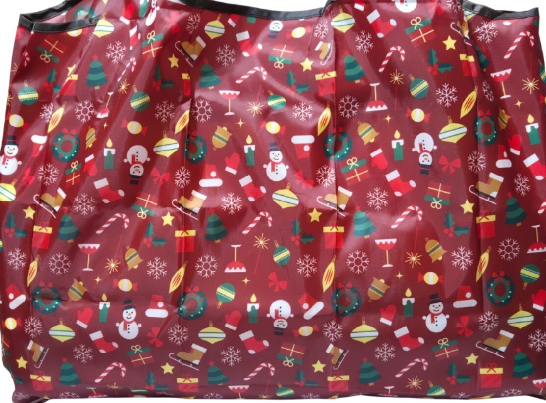 Christmas-Themed Large Foldable Lightweight Nylon Shopping Tote Shoulder Bag NEW