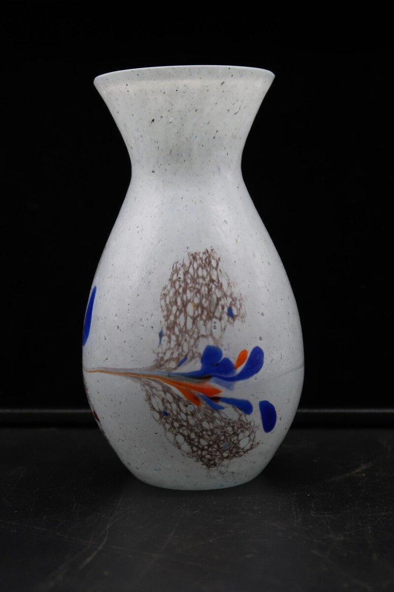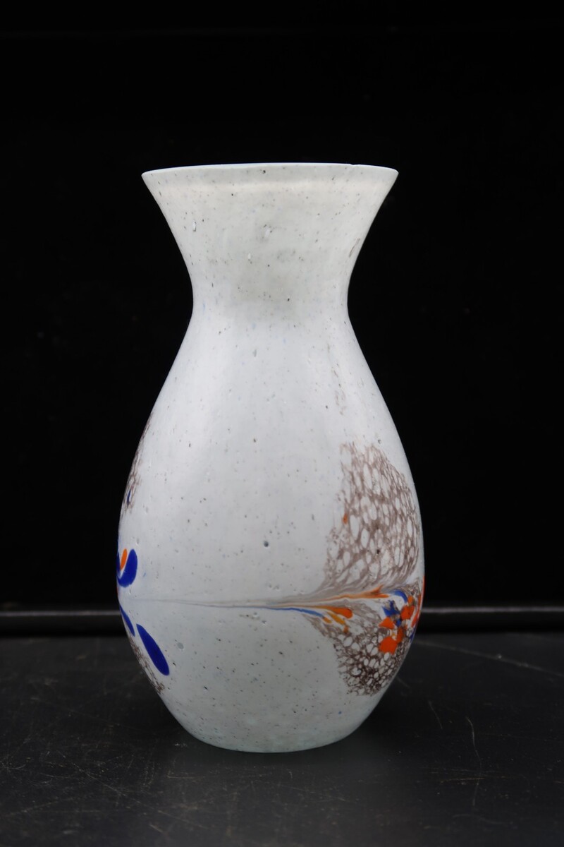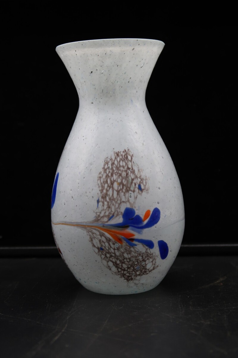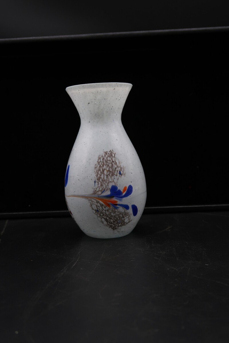 Vtg Hand Made Art Glass Vase White w/ Multicolored Splatter Design