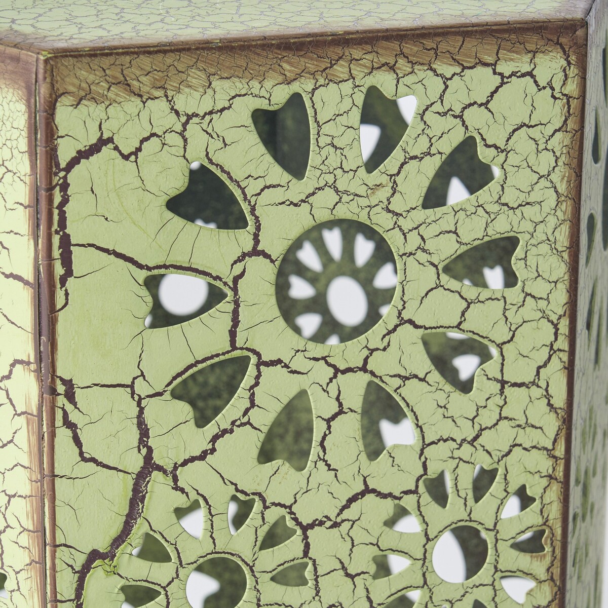 Featuring a sunburst cut out design, this iron table is both light weight and stylish.