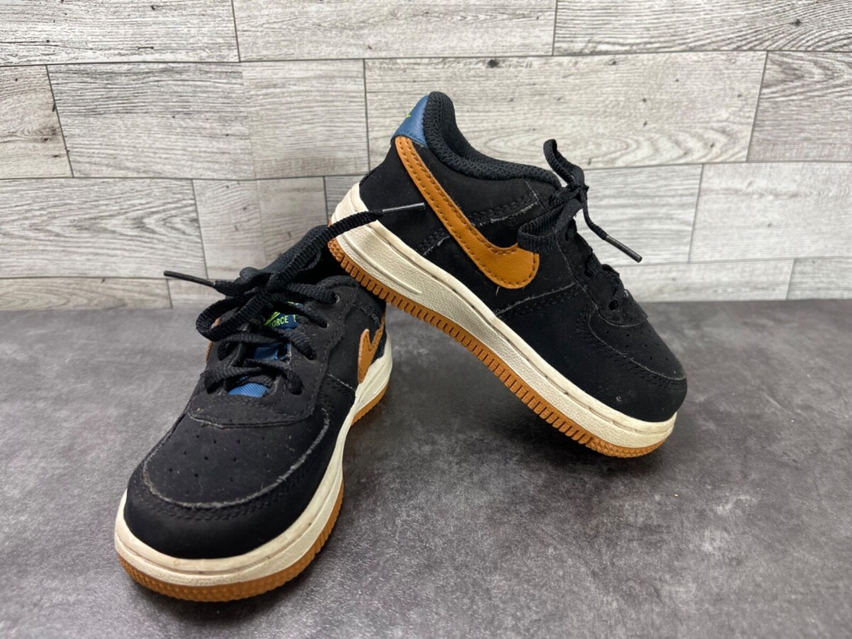 Nike Air Force 1 One Sneakers Child Infant 6C Shoes Black Brown Suede 596730-053