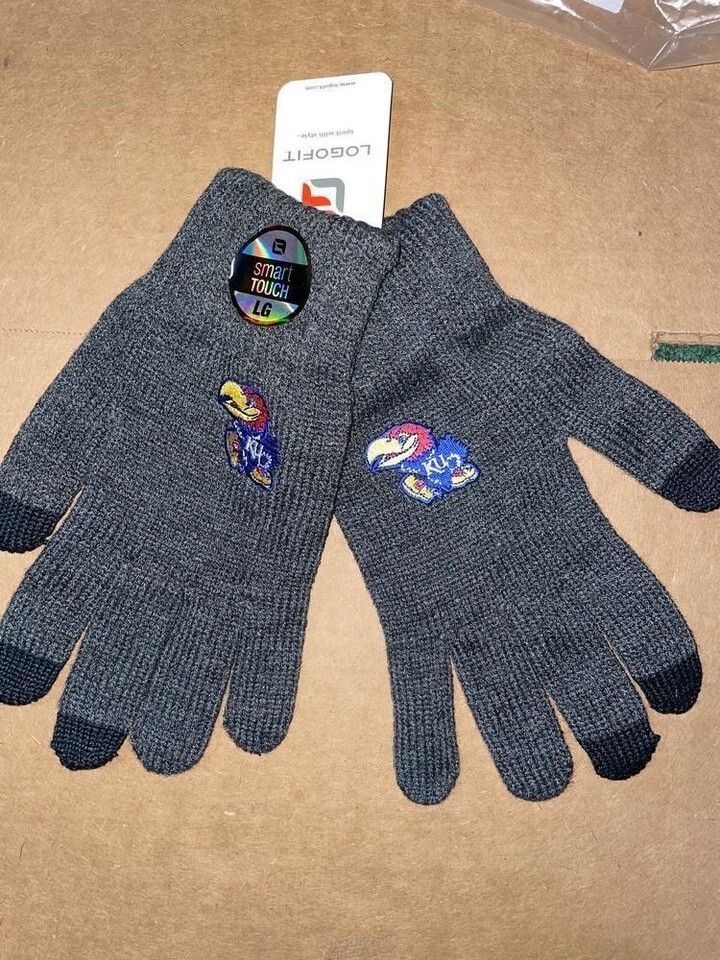 Kansas Jayhawks Smart Touch Knitted Gloves LARGE Winter Grey