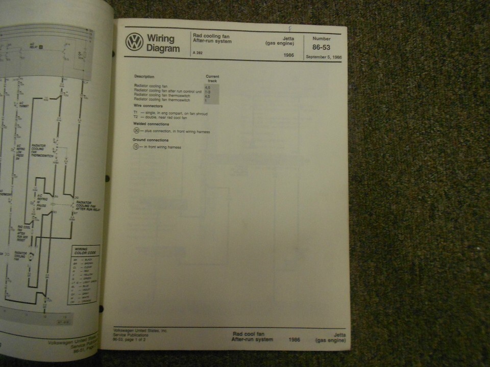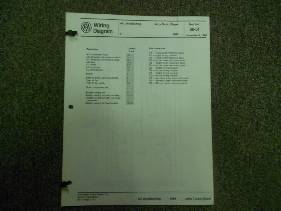 1986 VW Jetta Turbo Diesel Cooling Fan A/C EEC Wiring Diagram Service Manual OEM