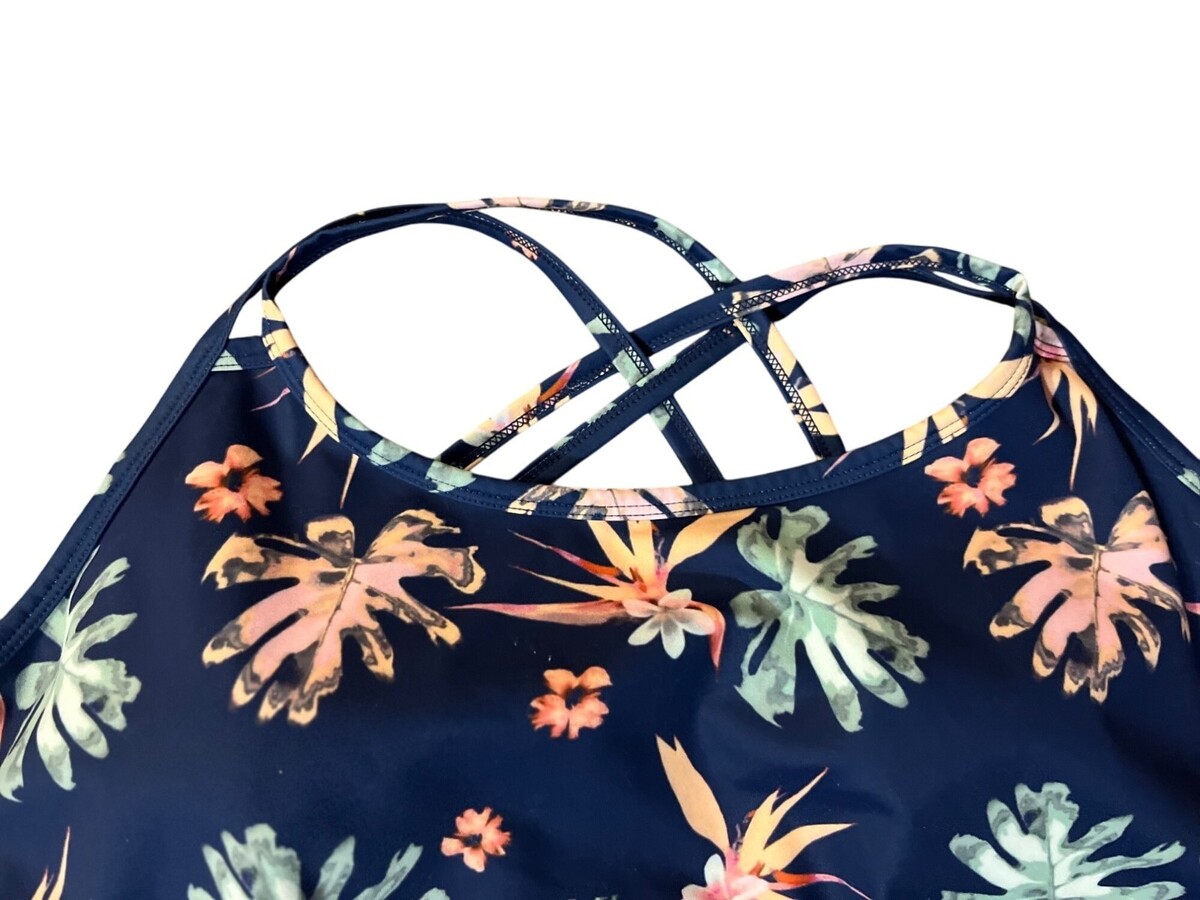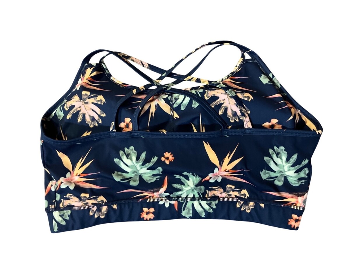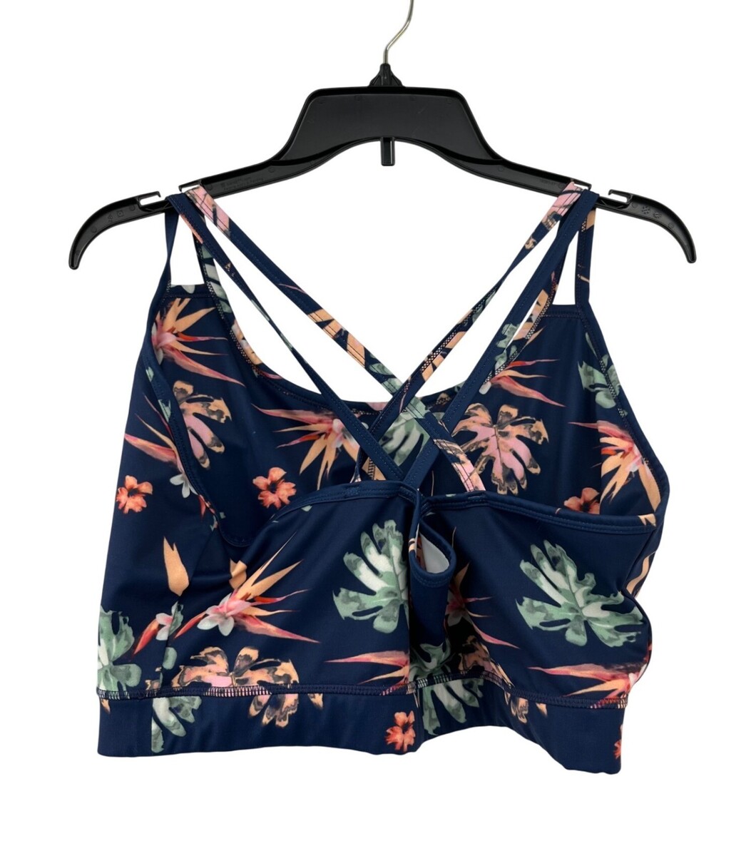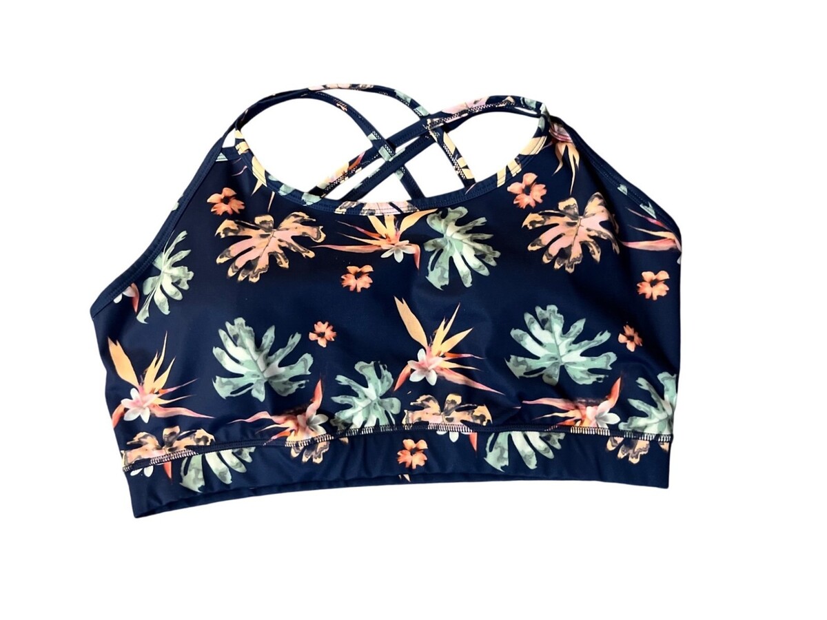 WalkPop, sports bra, longline bra, plus size bra, 3X bra, floral sports bra, strappy sports bra, navy bra, activewear, athleisure, WP0001B, polyester spandex bra, workout bra, yoga bra, gym bra, women?s plus activewear, pullover sports bra, tropical print bra