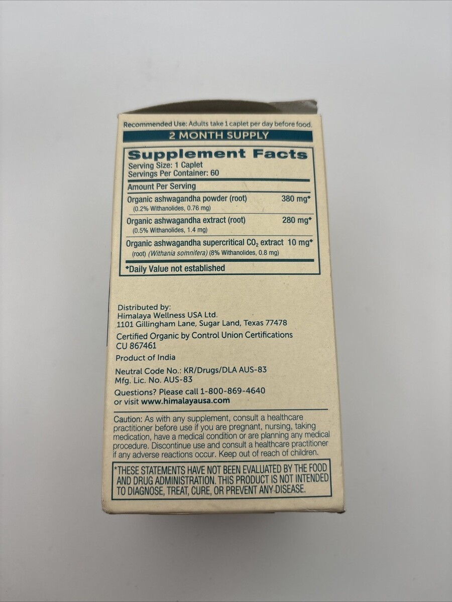 Himalaya Ashwagandha 60 Caplets Dairy-Free, Gluten-Free Exp. 05/2027