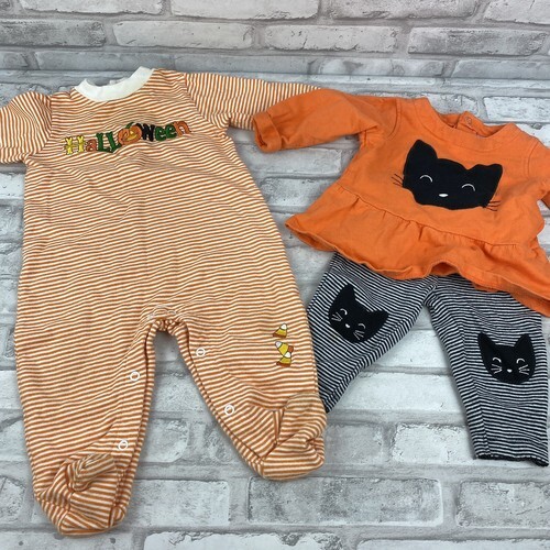 Halloween Baby Girl Fall Outfits 6 Months 2 Pc Set Bodysuit Black Cat Pumpkin
