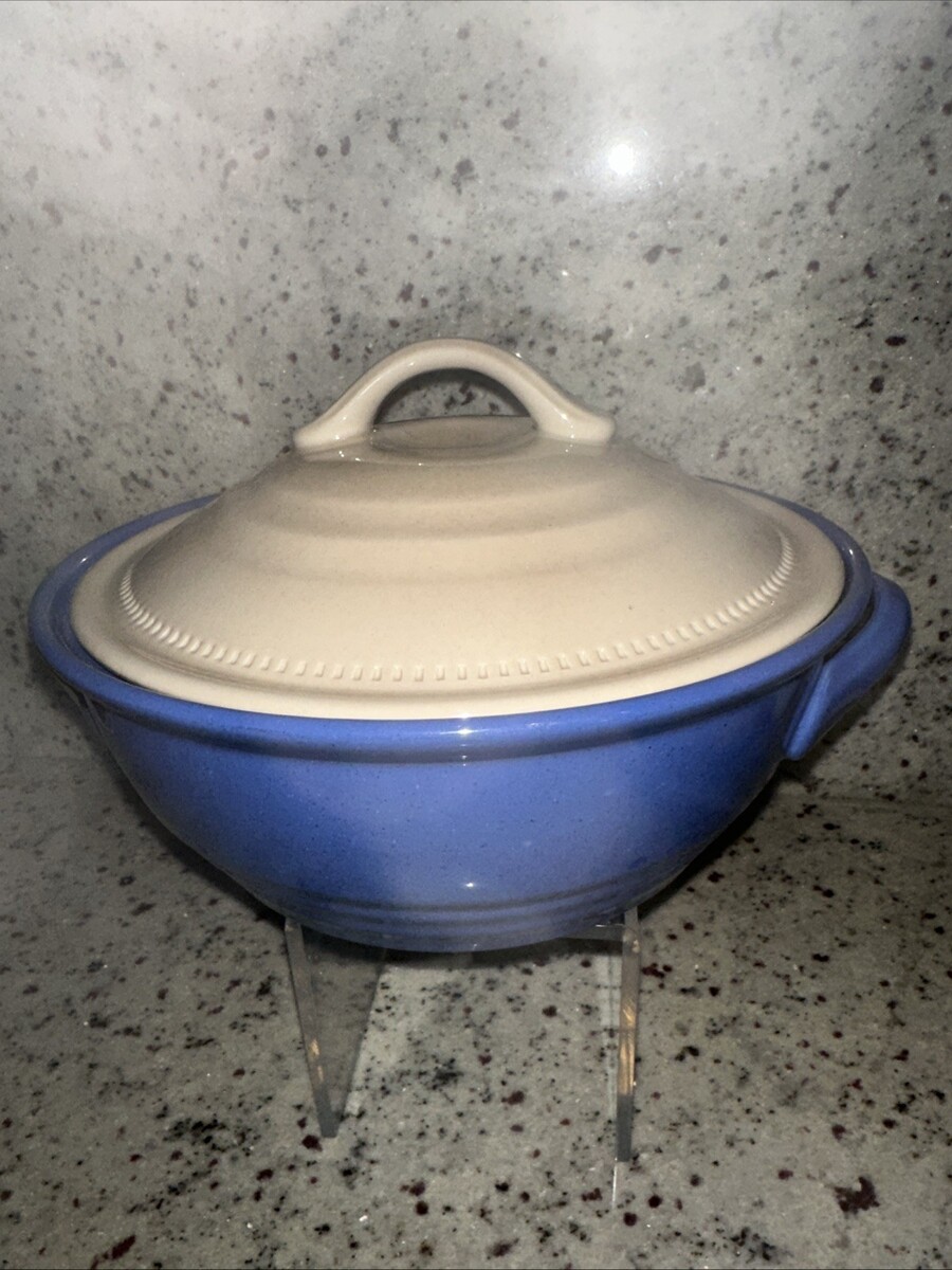 DANSK 9.5”casserole with lid CRAFT COLORS Blueberry/Ivory Lid Vintage Pre Owned