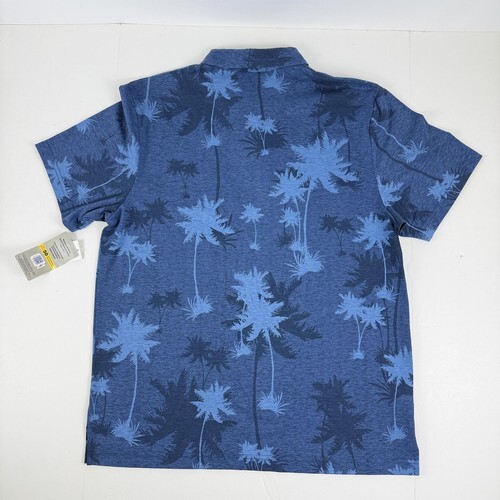 PGA Tour Oversized Palm Print Short Sleeve Performance Polo Size Large Blue