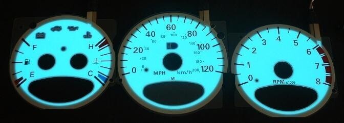 ***SUPER COOL Luminescent glow Gauge Kit*** New in the box. Buy here and save $$$$$zz. ^^^^^Ready to ship- ready to install^^^^ Install today and change dash color tonight!! Glows BLUE when the headlights are turned on.