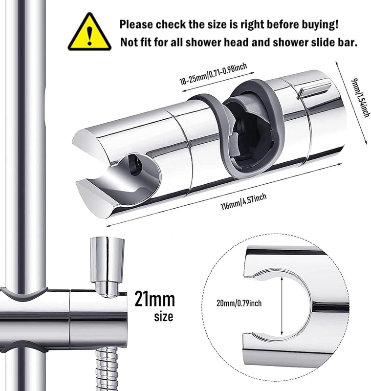 Pay Attention: Not fit for all shower heads and shower slide bar, please check the size is right before purchasing.