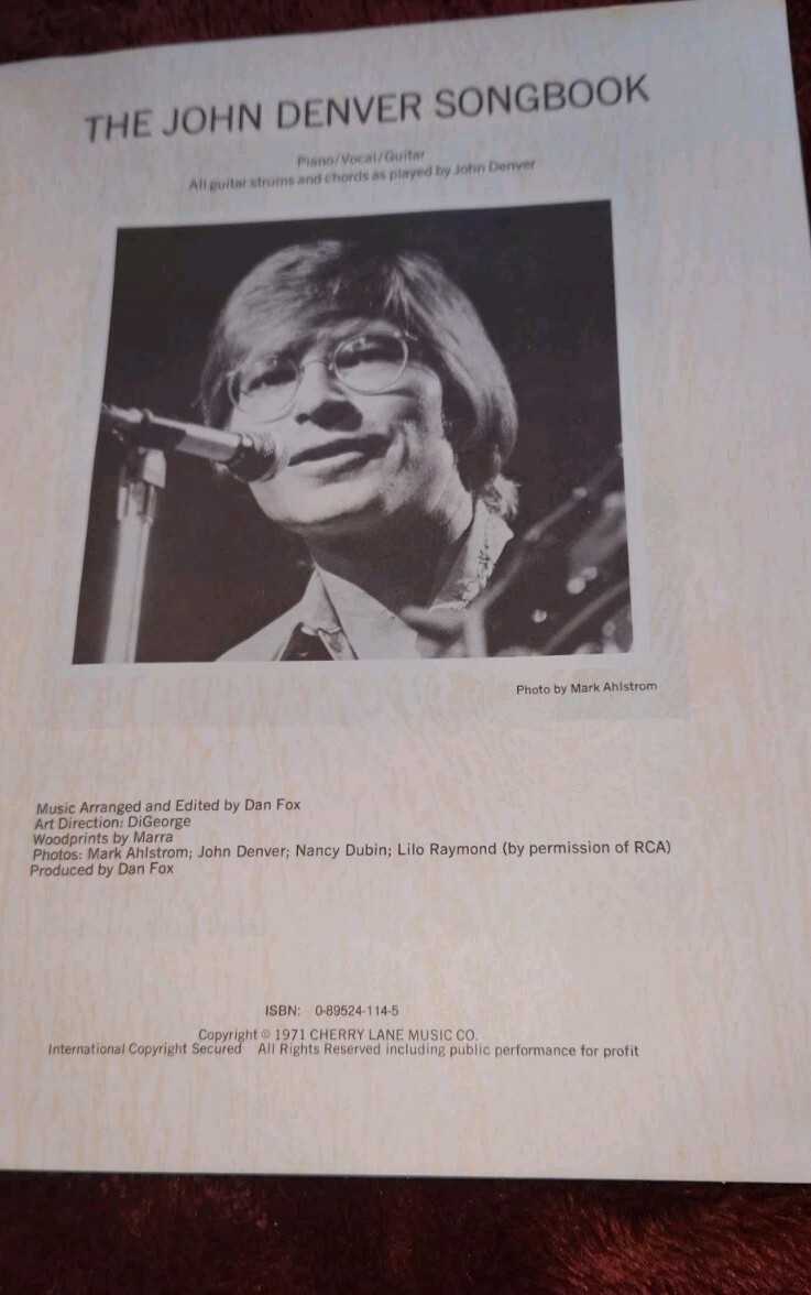 Vintage music book of John Denver. may be a little musty from storage. Cherry Lane Music