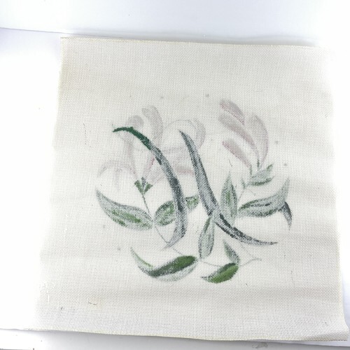 Hand Painted Canvas White Pink Blush Flower Floral Partially Started HA 1008-2H