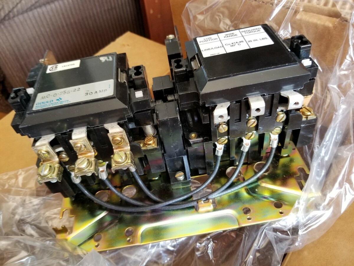 onan 307-2255 Gould Cat. No. MC-0-256-22 AC Automatic Transfer Switch Class B20 B21 for use on emergency and standby systems, total systems transfer.