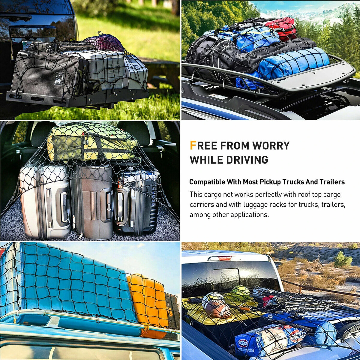 WIDE APPLICATION ?This trunk net works perfectly for roof top cargo carriers and luggage racks of trucks, trailers, pickups, jeeps, GMC. SUVs, ATV/UTV, rooftop luggage rack, cargo hitch racks, boat and more.