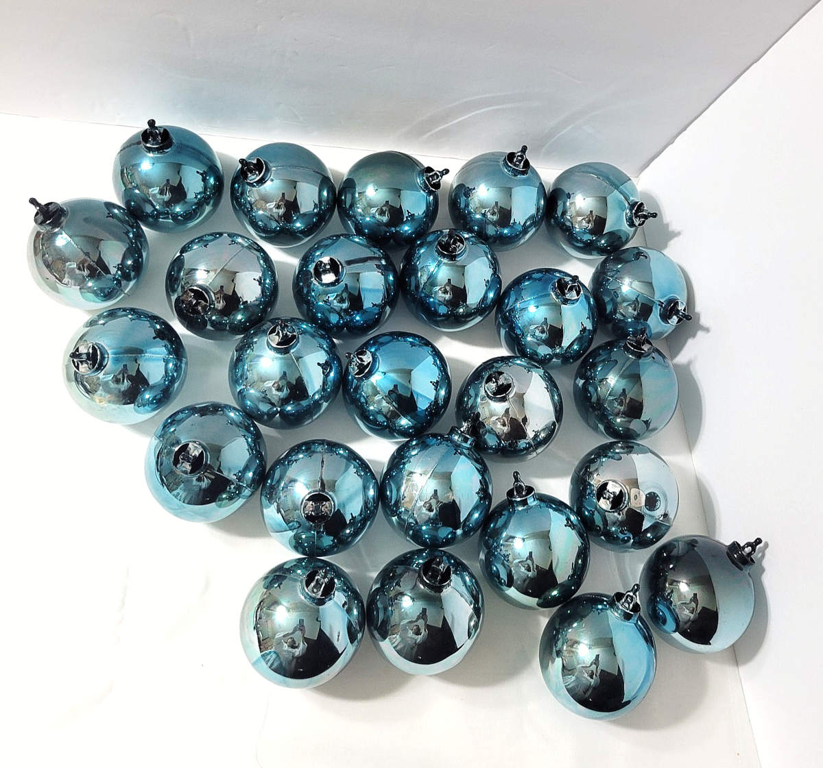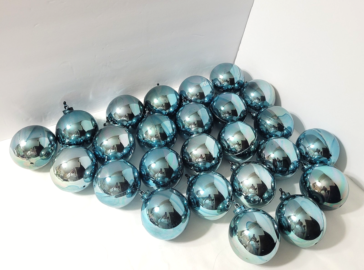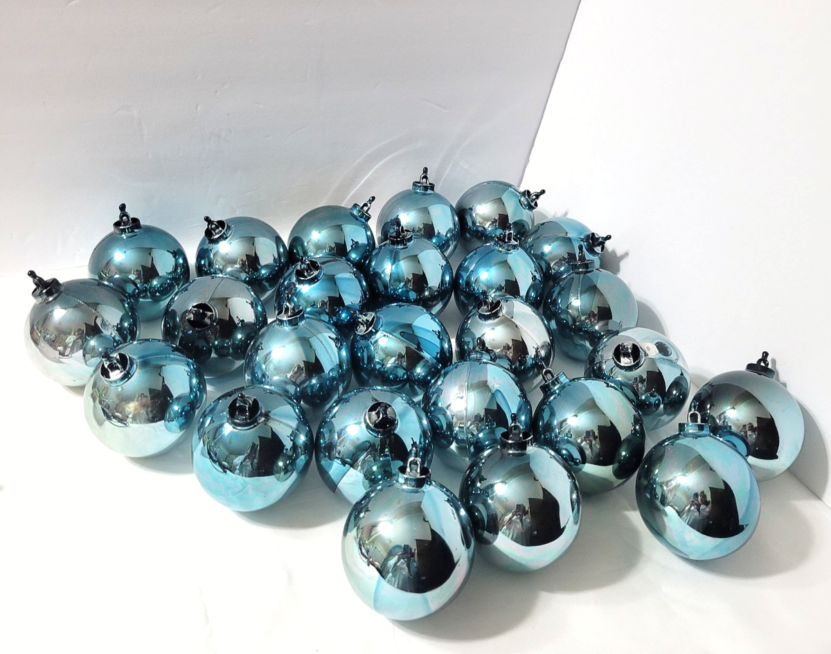 Vtg Lot 25 Bradford Hard Plastic Blue Balls Twist And Snap Christmas Ornaments
