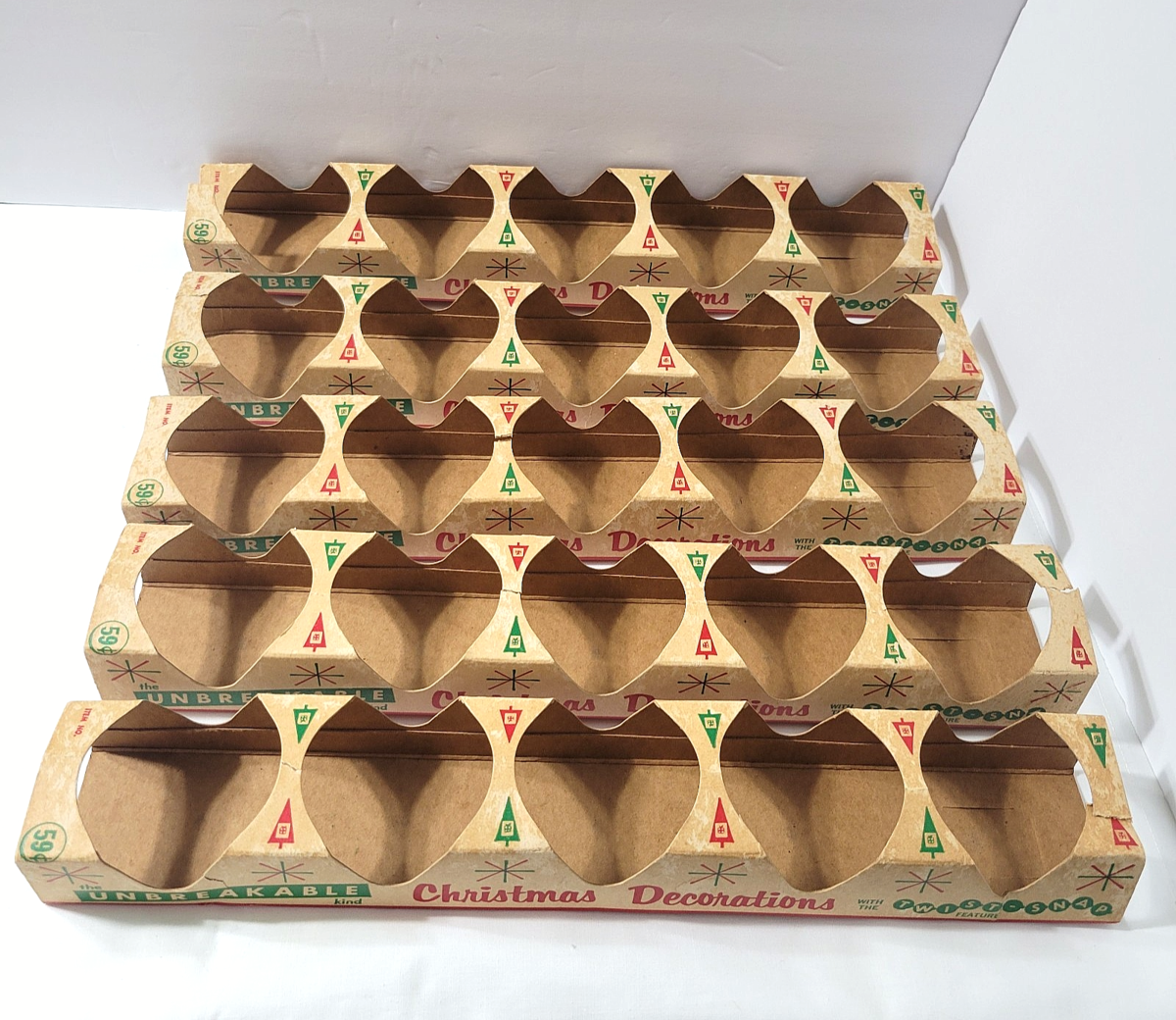 Approx 2.5" x 3", 5 to a box tray -- boxes do have staining and some tears due to age/storage