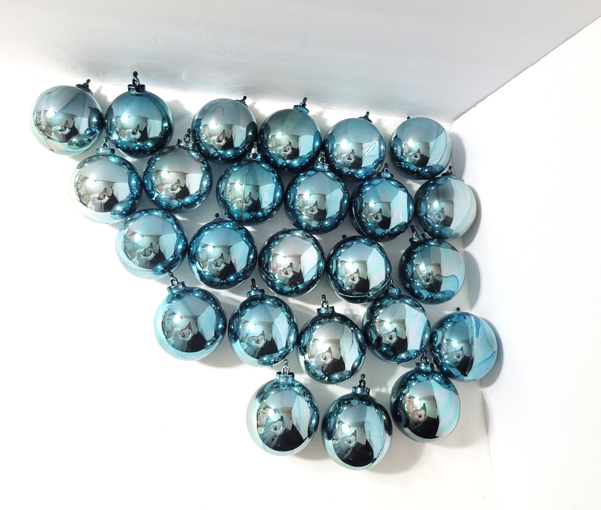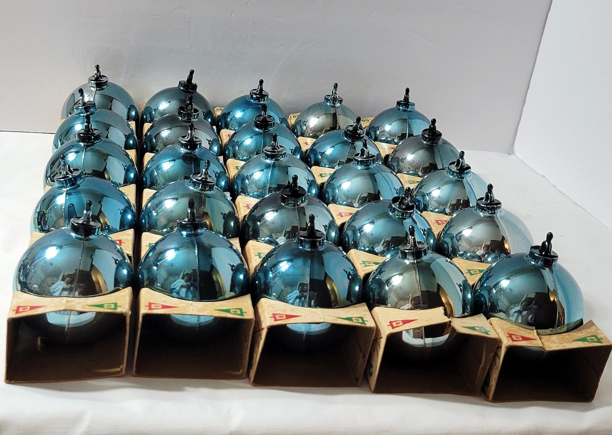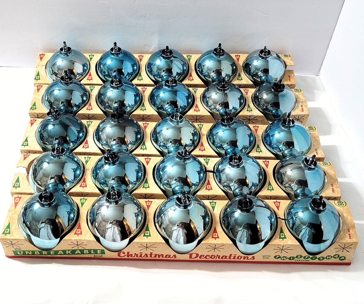 Fun lot of 25 vintage 'twist and snap' blue ball ornaments from Bradford