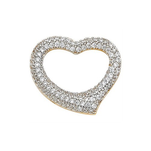 Genuine 14k Yellow Gold Women's Cubic Zirconia Curved Heart Slide 0.74" Pendant
