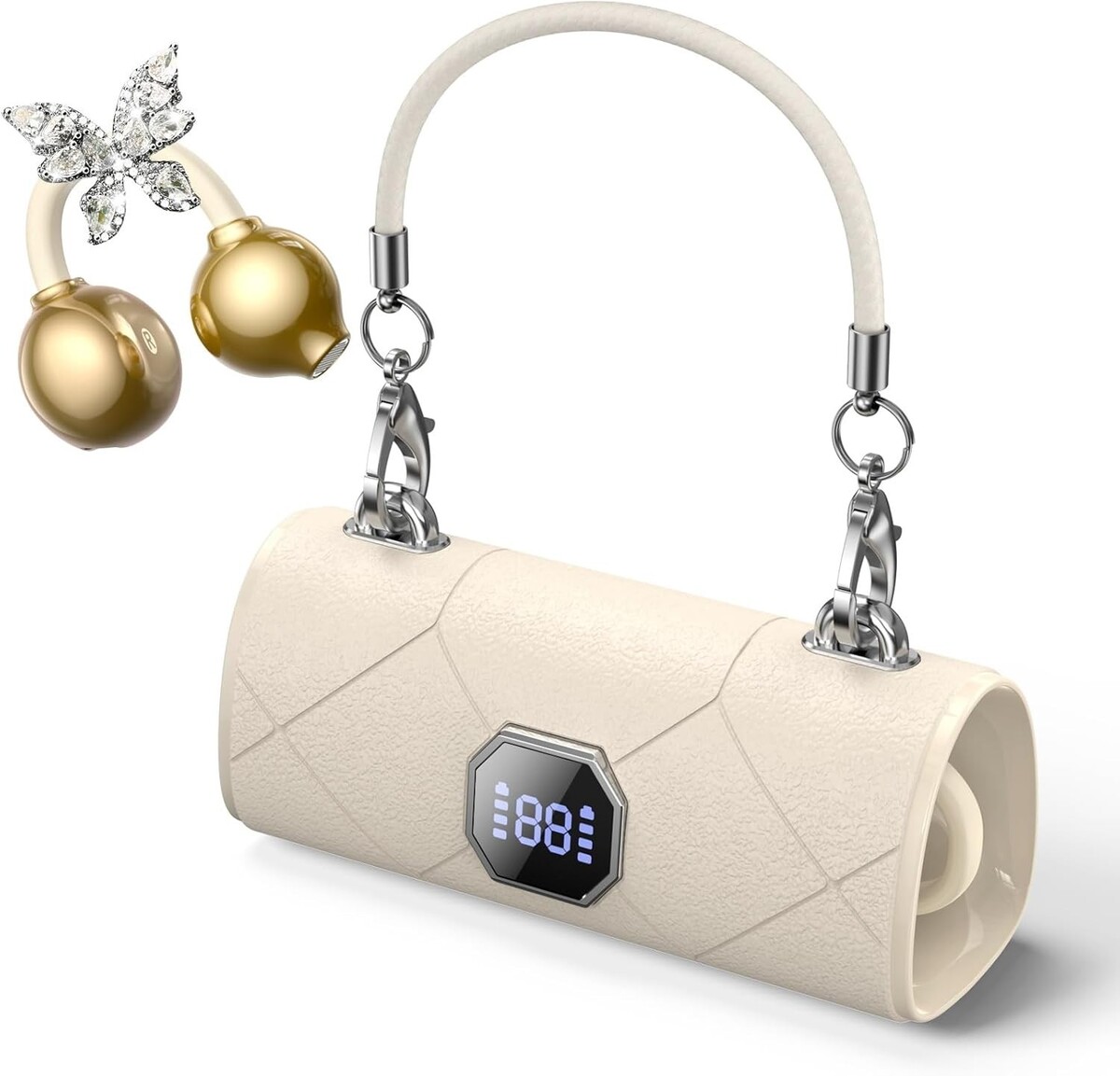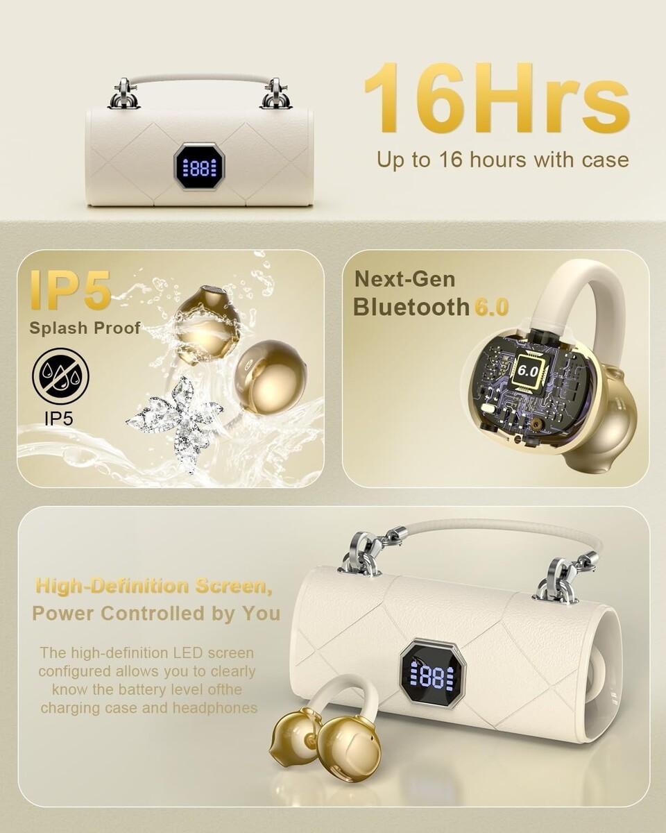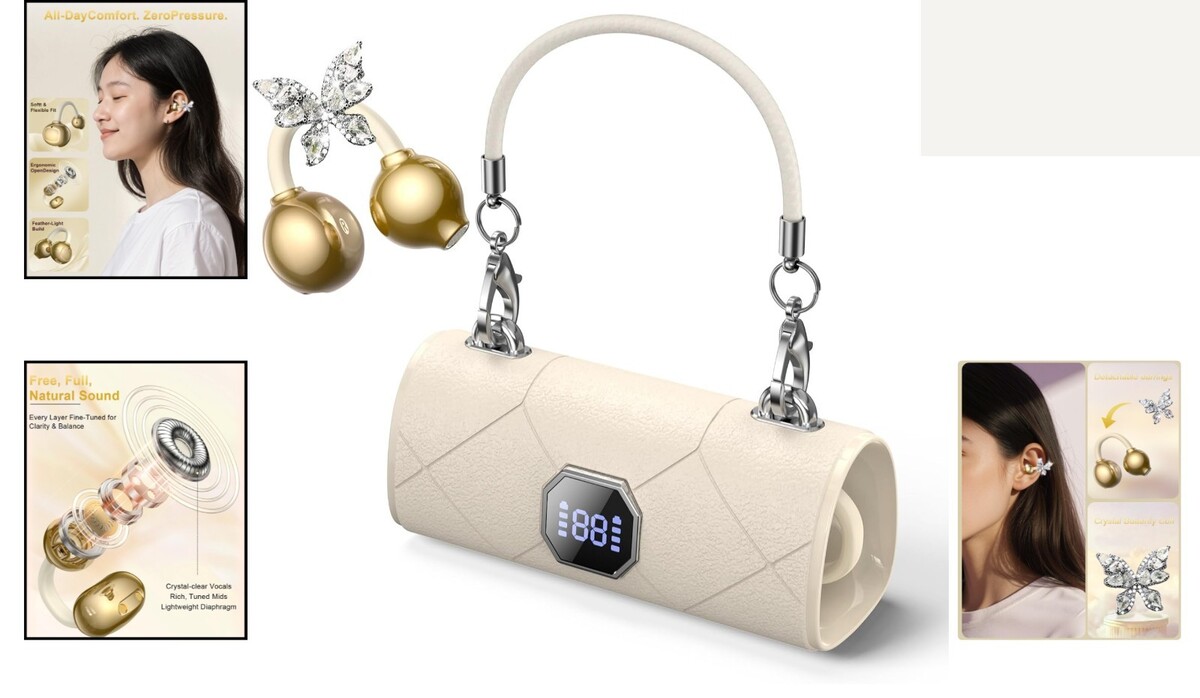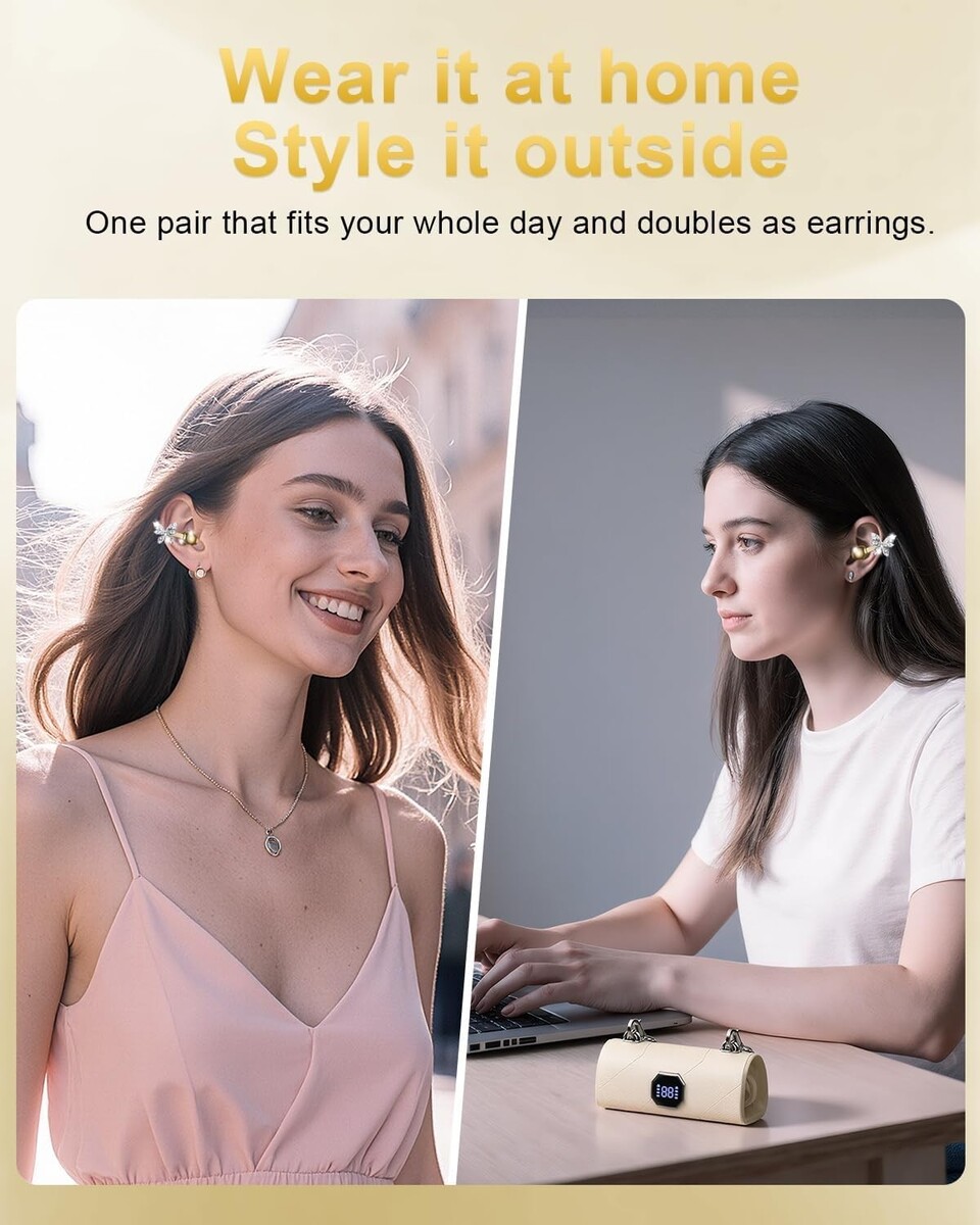 Bluetooth Wireless Crystal Jewel Earbuds Clip-on Butterfly Cream Gold Case Gift