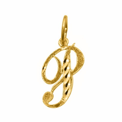This exquisite initial letter pendant is crafted from 14-karat yellow gold, showcasing a sophisticated cursive design that enhances its charm. The pendant features the letter P which has a stunning diamond-cut finish, adding a touch of sparkle and refinement. Measuring approximately 0.78 inches in length, this pendant is designed to be thin and lightweight, ensuring comfort for everyday wear. The careful craftsmanship is reflected in every detail, making it an appealing accessory for various occasions?whether for casual outings or more formal events.
